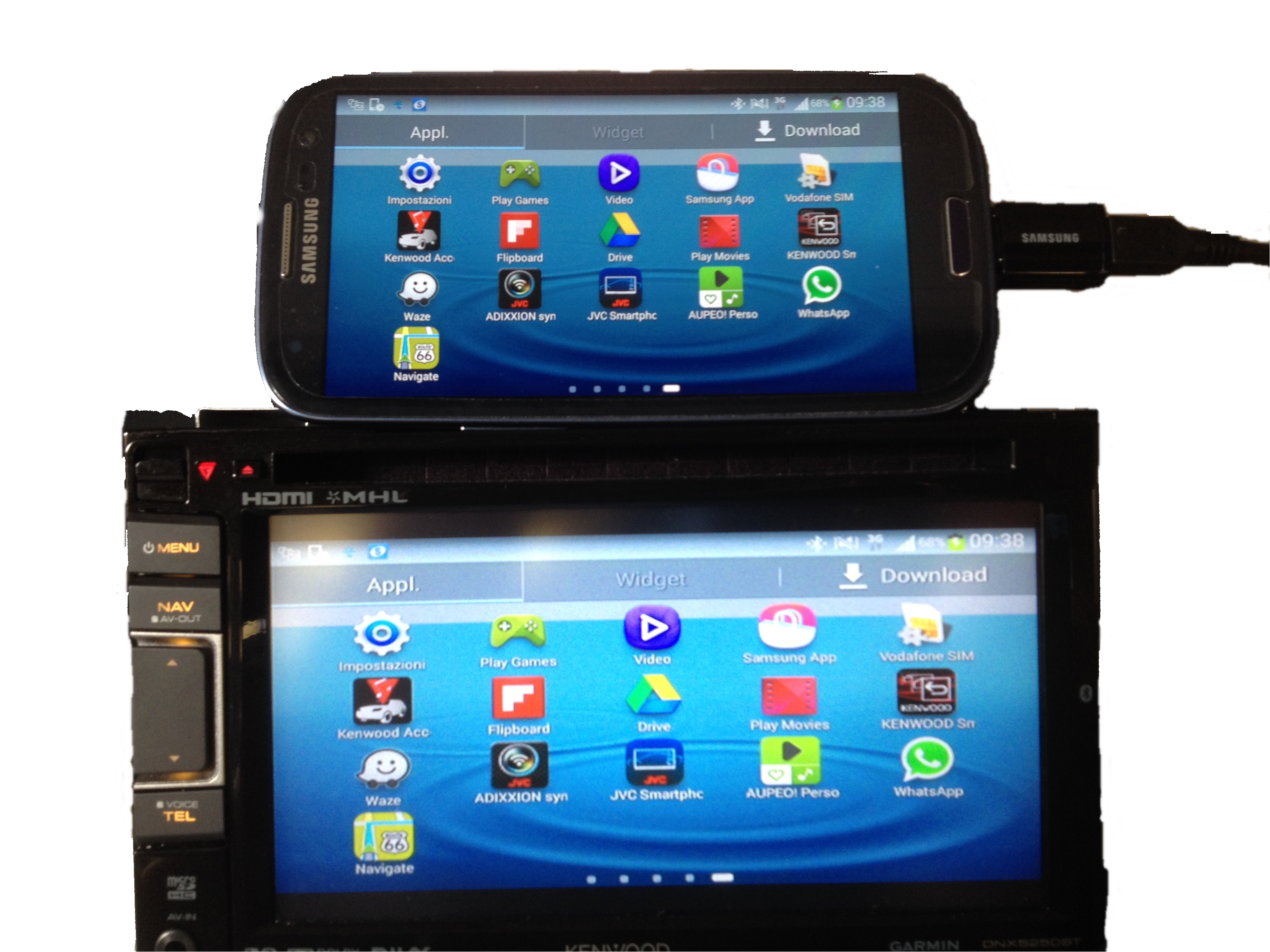 I sintomonitor DDX5025BT; DDX5025DAB e DDX7025BT sono equipaggiati di una connessione HDMI, questa connessione permette di collegare uno smartphone Android (MHL compatibile) o un iPhone 5, in modo da visualizzare i contenuti di questi smartphone.