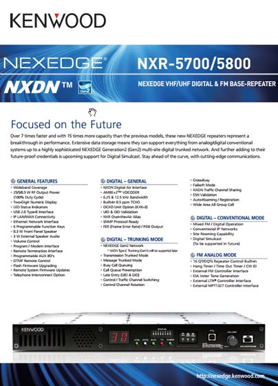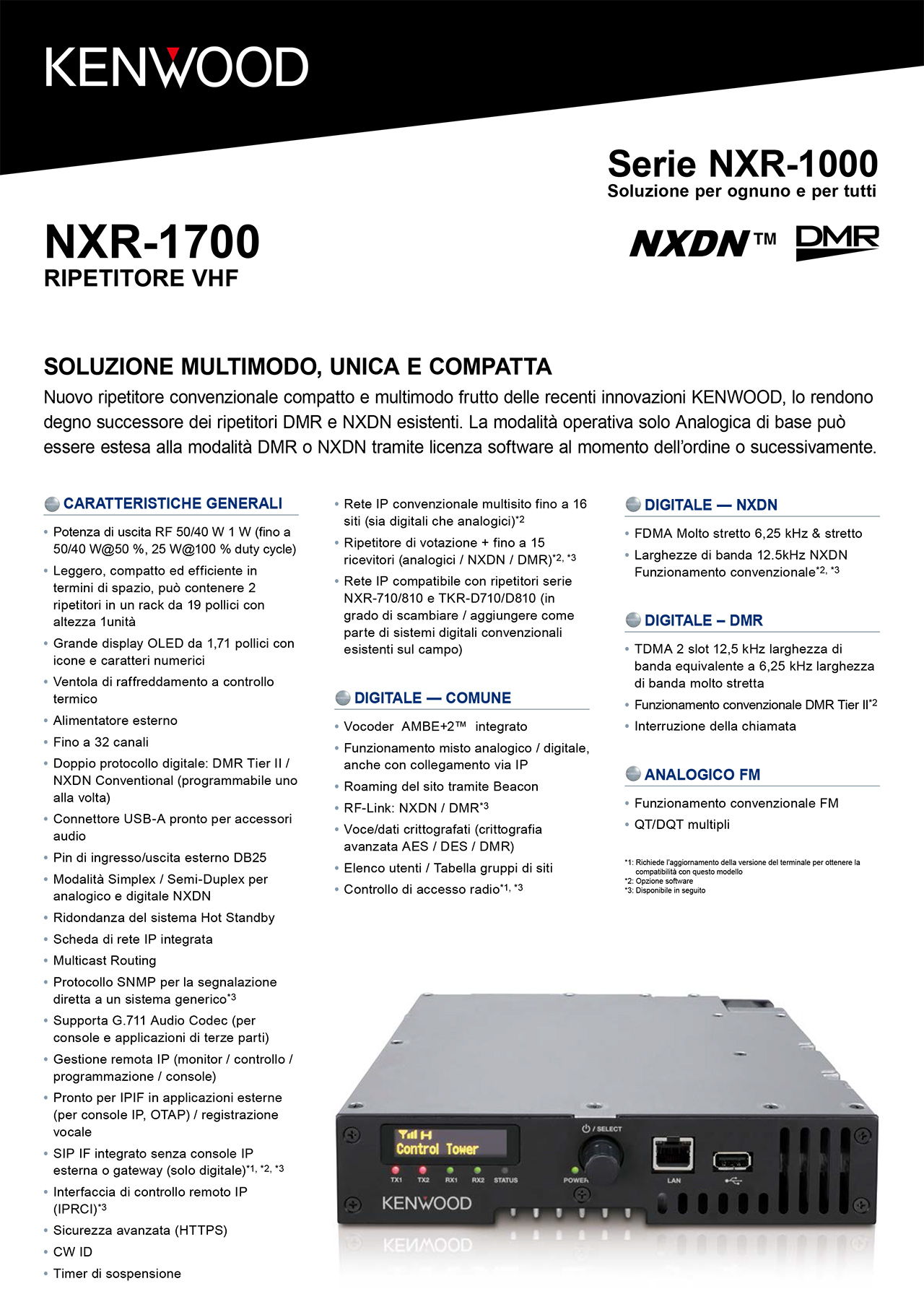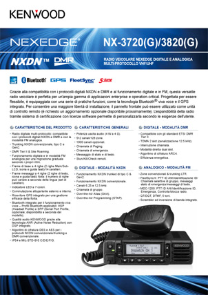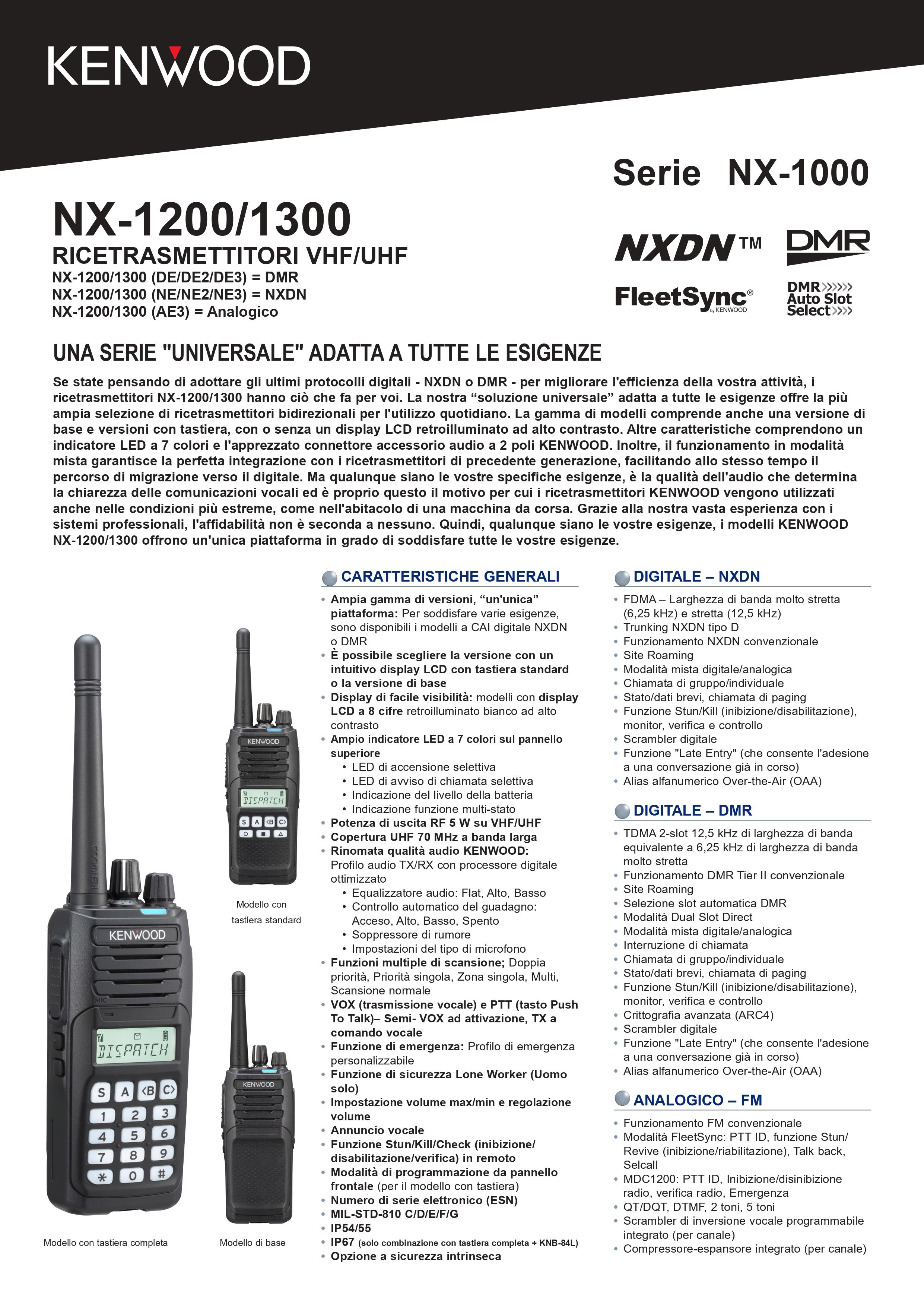 Apparecchiature per Radioamatori 2017/2018 Catalogo nexedge 2015 Catalogo serie NX-5000 Catalogo serie NX-3000 Communications – Brochure Amatoriale in formato PDF Brochure APRS & Digitale TH-D74E Brochure TS 990S Brochure - TH-D75E Brochure - TH-D75E, APRS & DIGITAL Communications – Brochure Libero Uso in formato PDF Brochure PMR446 PKT-23 Brochure PMR446 TK-3501E Brochure PMR446 TK-3401DE Brochure DECT-ProTalk-WD-K10 Brochure PMR446 TK-3601D Brochure UBZ-LJ9SET Communications – Brochure Professionale in formato PDF Brochure NXR-1700 RIPETITORE VHF Brochure NX-1700/1800 Brochure NX-1200/1300 Brochure serie NX-5000 portatili Brochure serie NX-5000 veicolari Brochure serie NX-3000 portatili Brochure serie NX-3000 veicolari Brochure portatili TK-D240/D340 Brochure veicolari TK-D740/D840 Brochure software KAS-20 Brochure NX-200S/300S Brochure NX-220E/320E Brochure NX-700/800 Brochure NX-720G/820G Brochure NXR-710/810 Brochure NXR-5700/5800 Brochure TK-2000E/3000E Brochure TK-2302/3302 Brochure TK-2360E/3360E Brochure TK-7180/8180 TK-7189/8189 Brochure TK-7302E/8302E Brochure TK-7360E/8360E Brochure TKR-D710/D810 Brochure DMR TK-D240/TK-D340